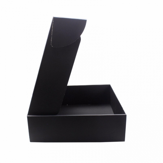 Se trata de una caja de correo de envío negra hecha con cartón negro de 250 g + flauta BE + cartón negro de 250 g, el logotipo dentro y fuera de la caja está estampado con papel de aluminio dorado.