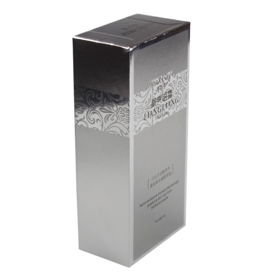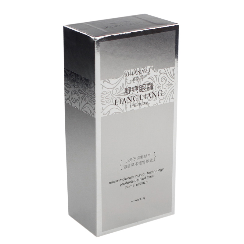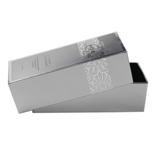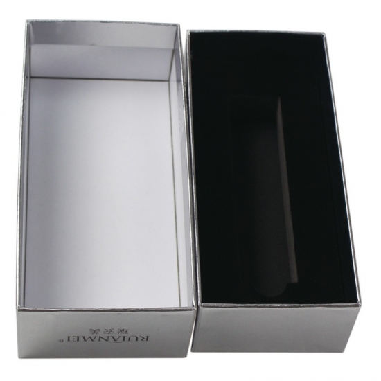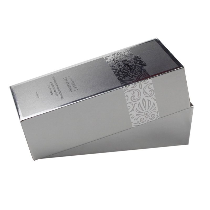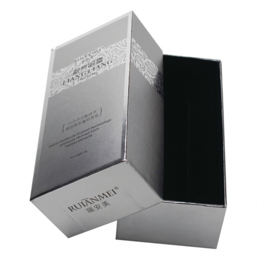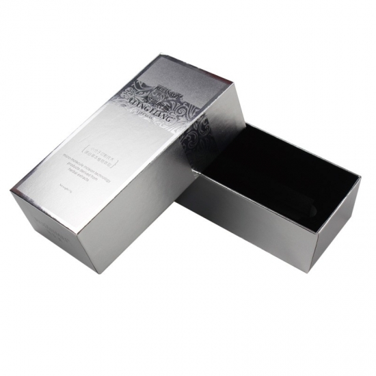Se trata de una caja rectangular de regalo para cosméticos de color plateado con tapa y base. de papel brillante especial + cartón gris de 1200 g, utilice el papel brillante Haz que la caja sea súper hermosa y de alta gama.