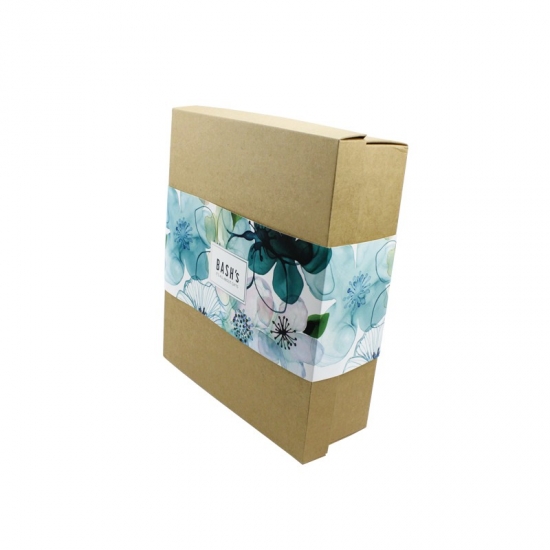 Esta es una caja de regalo kraft con impresión negra y color marrón cuadrado. lo cual hizo por papel artístico C2S de 157 g + cartón gris de 1200 g y funda colorida personalizada.