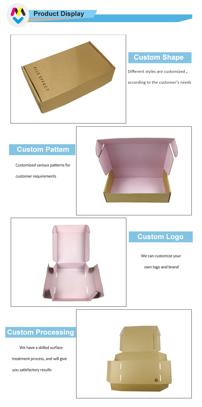 3) Acabado de la superficie: gráfico de impresión completa en el interior con laminación mate + impresión del LOGOTIPO