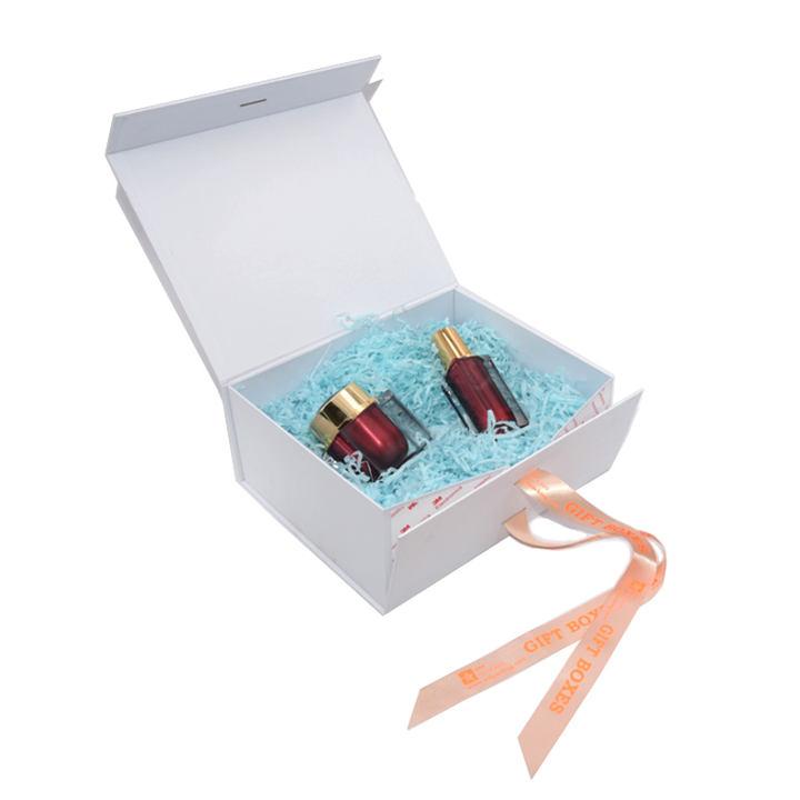 Este es un color azul mate. caja de regalo blanca con cinta lo cual hizo por papel de arte recubierto de 157 g + tablero gris de 1200 g, logotipo personalizado en la parte superior de la tapa y texto escrito dentro de la caja con cierre de cinta cuyo color coincide con el color del logotipo.