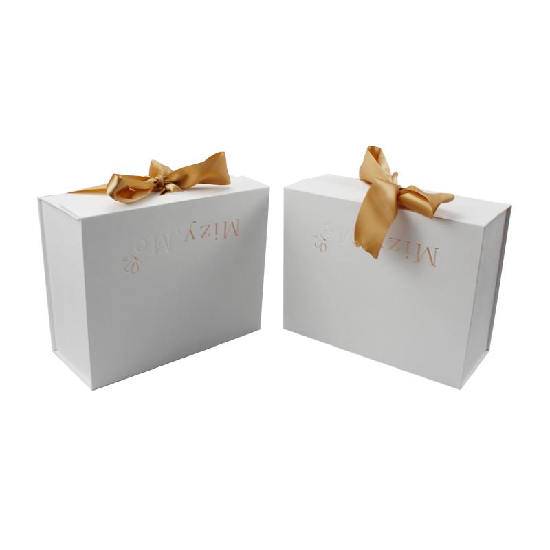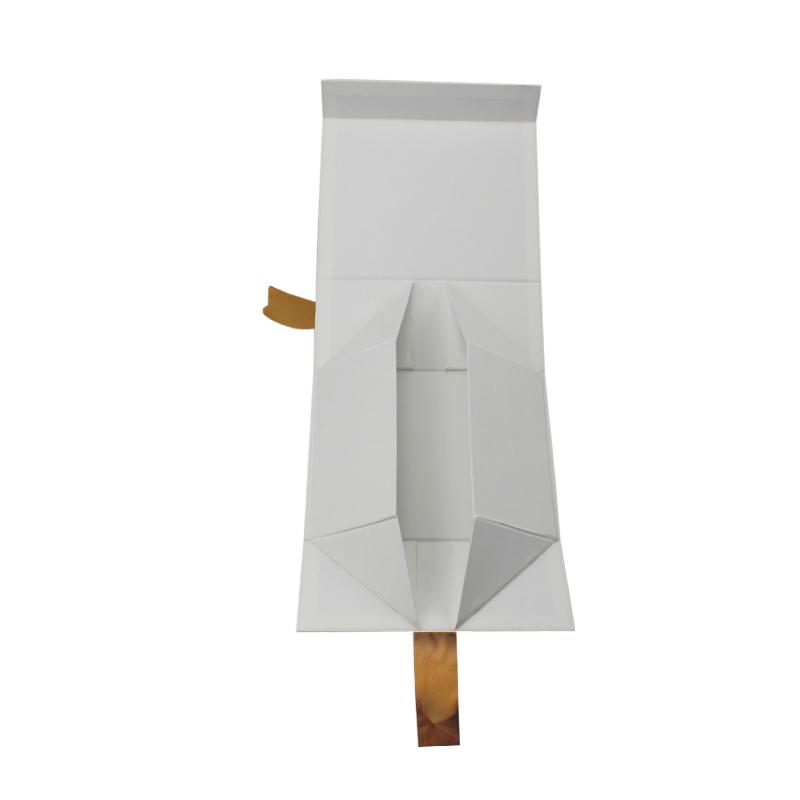 Este es un modelo único y elegante. Caja de regalo blanca con tapa magnética lo cual hizo Fabricado en papel blanco especial + cartón gris de 1200 g, logotipo estampado y grabado en relieve en la parte superior de la tapa a juego con cinta de color dorado.