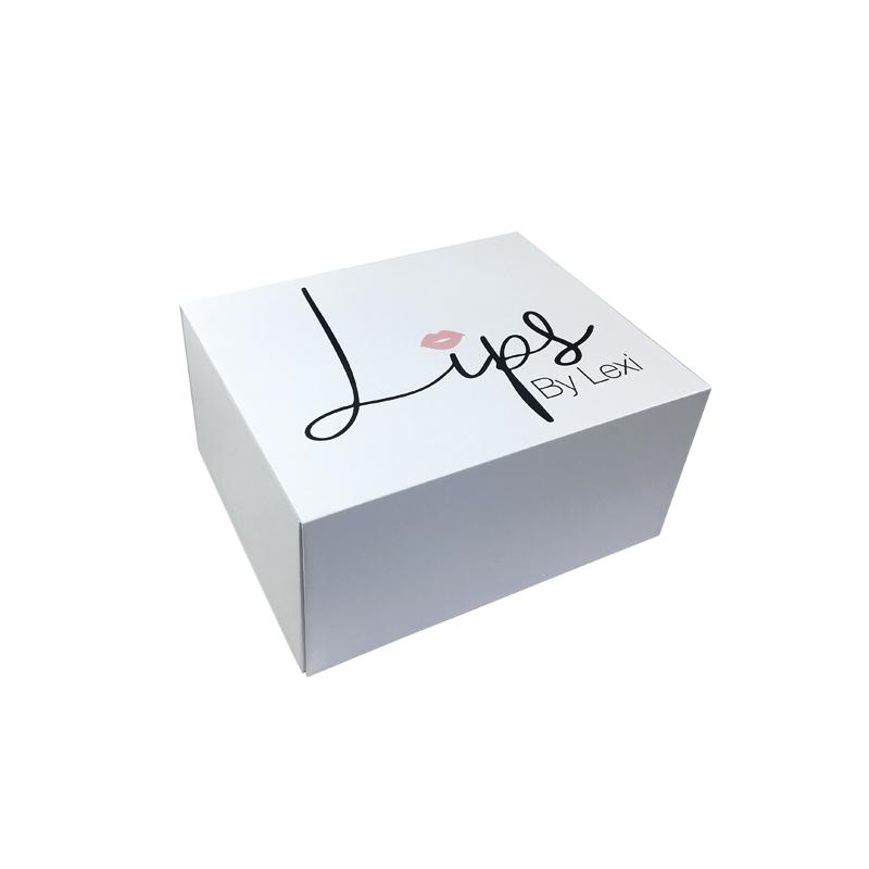 Estas son cajas de regalo plegables de cartón blanco plegables. lo cual hizo por papel artístico C2S de 157 g + cartón gris de 1200 g .El acabado de la superficie es laminación brillante.