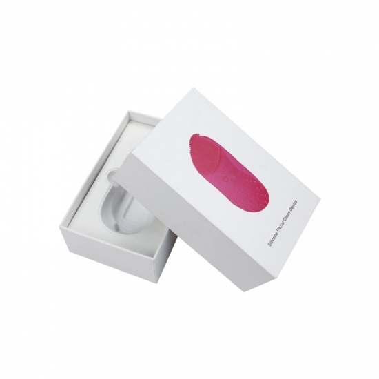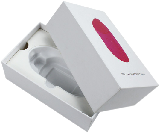 Esta es una caja de regalo blanca brillante con forma rectangular y tapa con patrón gráfico. lo cual hizo por papel artístico C2S de 157 g + cartón gris de 1200 g Dentro de la caja hay un inserto de plástico blíster que se moldeará según los productos. .