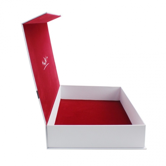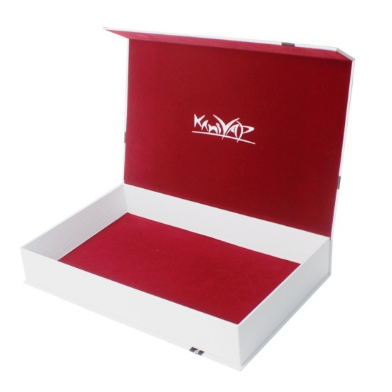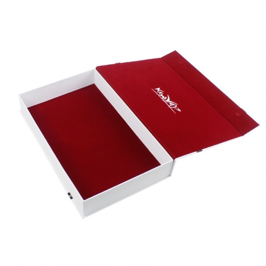 Este es un libro en forma de cajas de regalo magnéticas lo cual hizo por papel especial de textura blanca + tablero gris de 1200 g, cubierta interior con tela de terciopelo rojo que mejora la gama alta de las cajas. Podemos personalizar el tamaño según su solicitud.