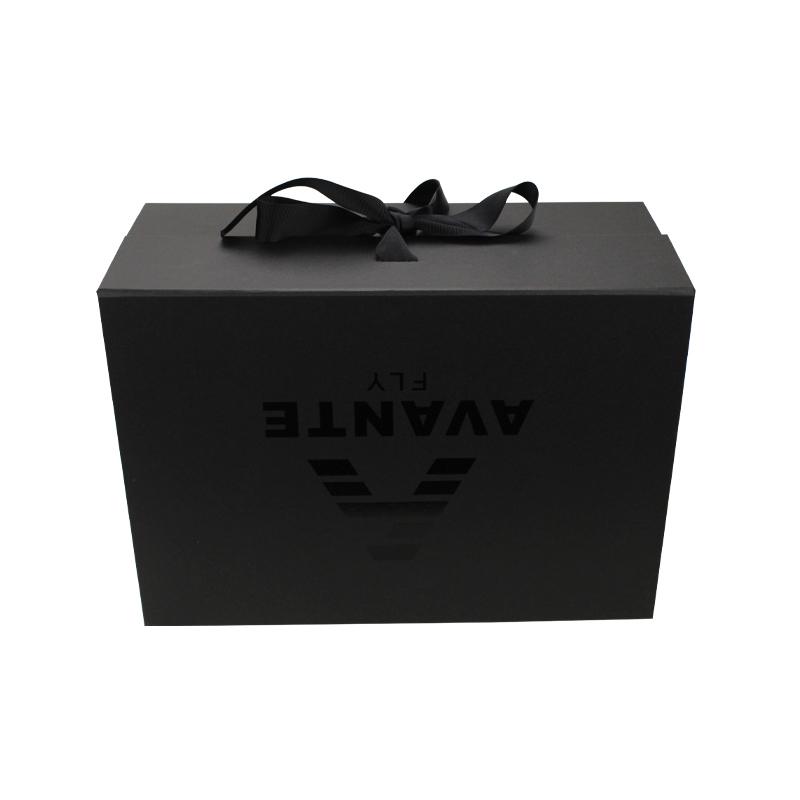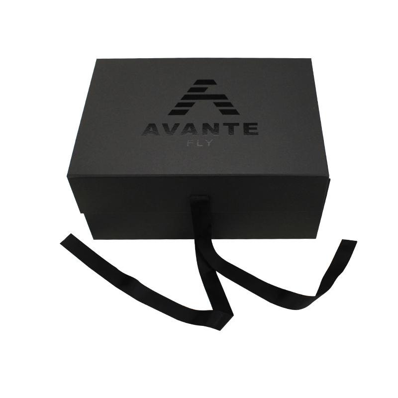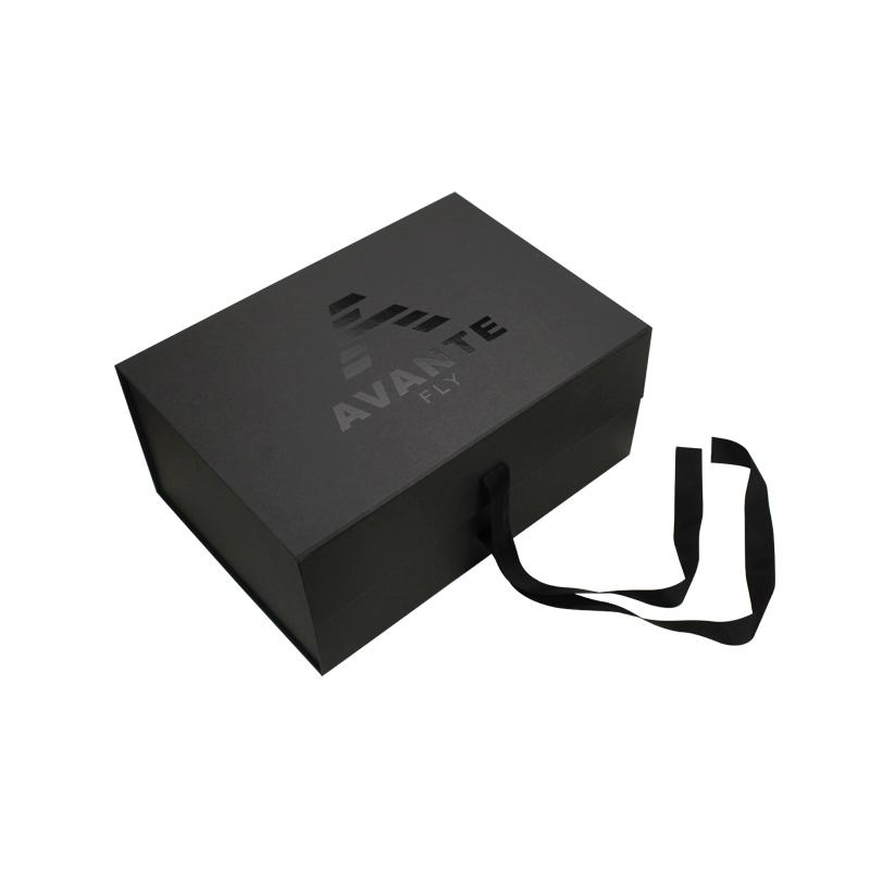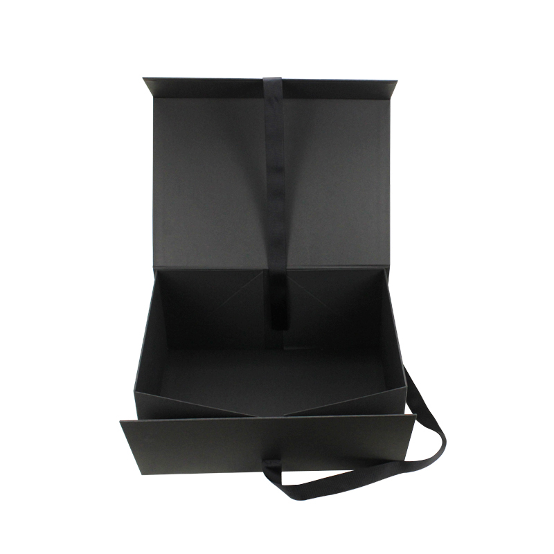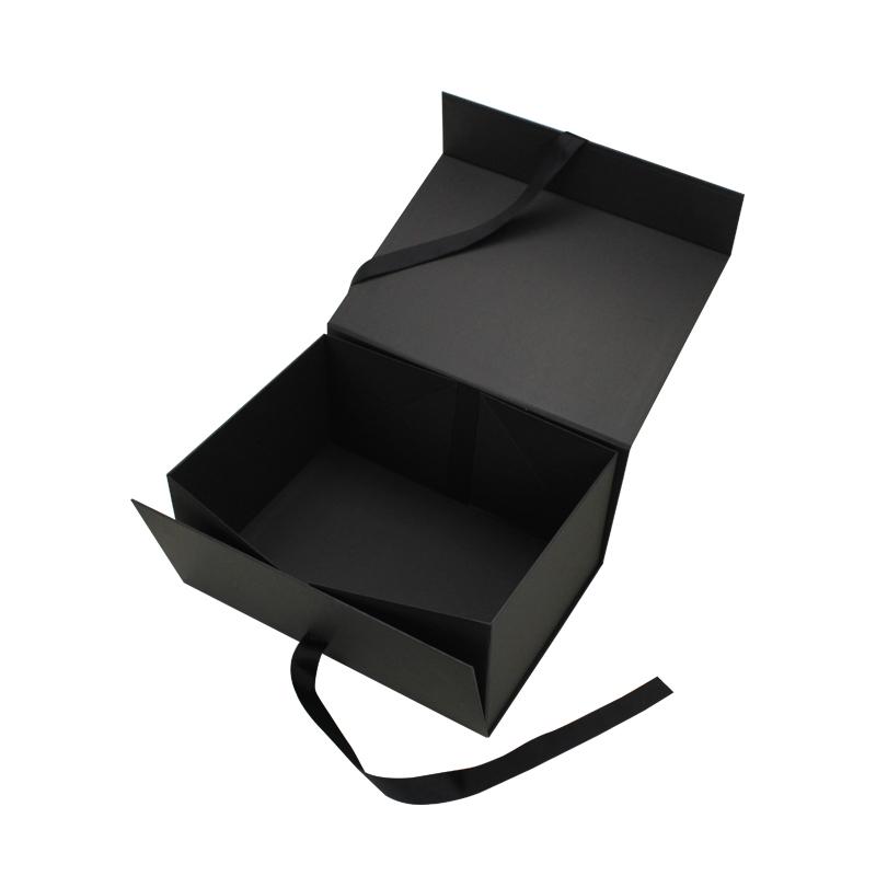 Normally 15-20 days after design/sampleCaja de regalo magnética negra con cinta, plegable, de papel, al por mayor