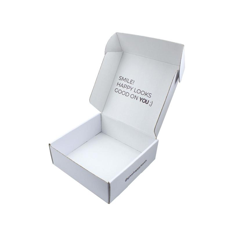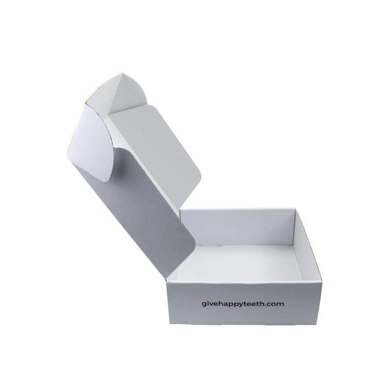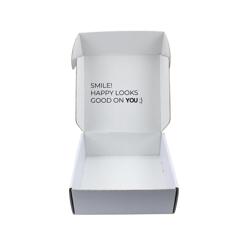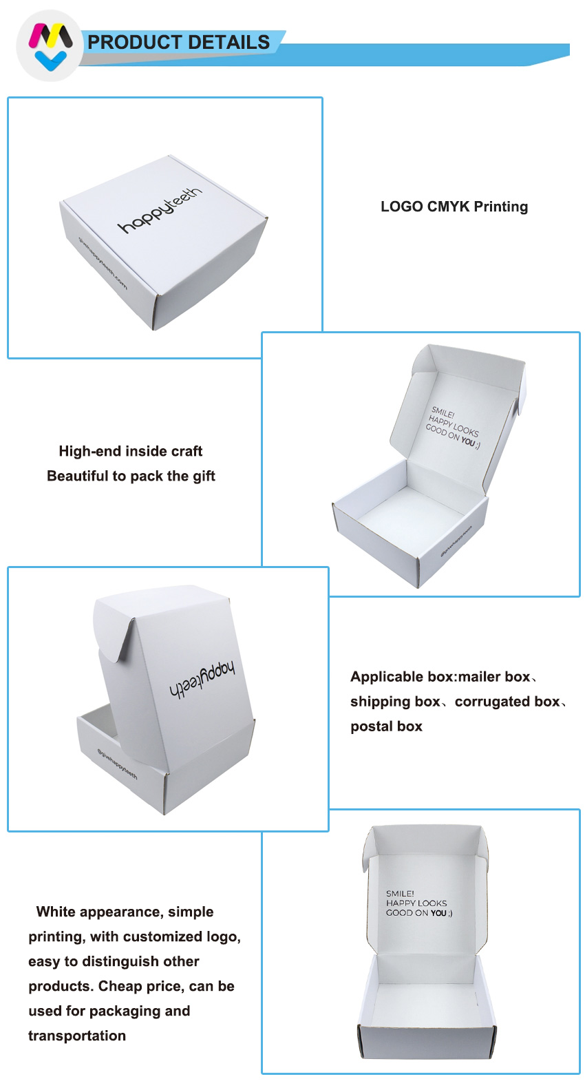 Este es un blanco pag cajas de embalaje y envío Con logotipo impreso en ambos lados. Un simple logotipo negro puede ahorrar costos de empaque.